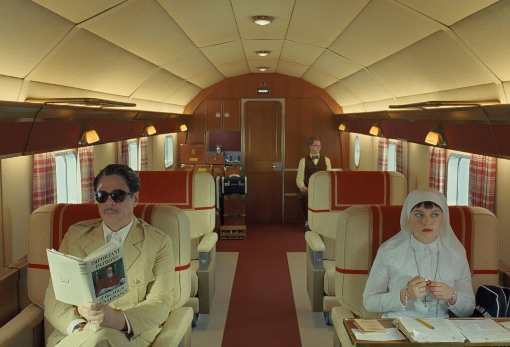Benicio Del Toro é Zsa-zsa Korda, um magnata que desafia corporações e governos de todo o planeta com esquemas de evasão, dissimulação e golpes das mais diferentes matizes. Seu torpor moral contrasta com o fervor religioso de sua filha Liesl (a ótima Mia Threapleton), uma noviça de quem ele tenta se aproximar, em parte por certa culpa e em parte como mais um de seus elaborados esquemas. É dessa dialética confusa – mesmo para os personagens -, que “O Esquema Fenício” se alimenta.
