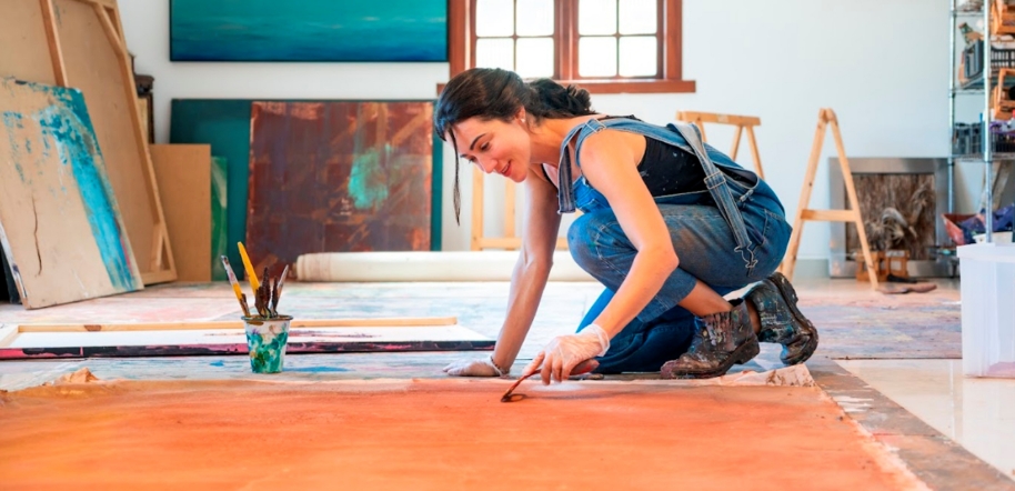 A pesquisa de Ana Elisa tem origem incomum: durante a pandemia, após desenvolver fortes reações alérgicas a insumos industriais, ela passou a produzir suas próprias tintas a partir de minerais coletados em Minas Gerais. O que nasceu como uma solução prática rapidamente se transformou em investigação estética. A artista mergulhou no processo artesanal de extração e preparo de pigmentos e, a partir daí, construiu uma linguagem visual que já circulou por Londres e Abu Dhabi.