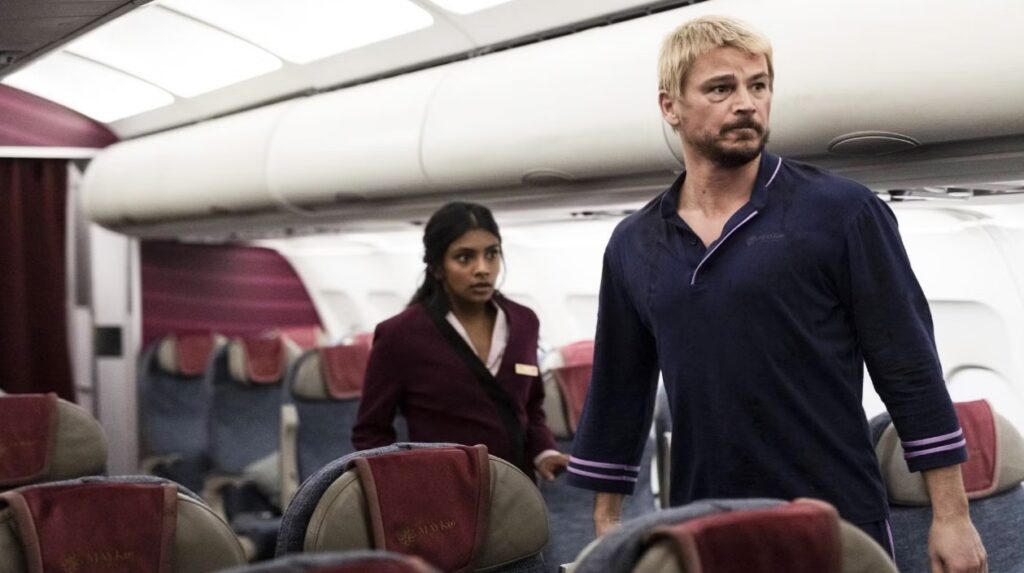Somando-se ao apelo do filme está Charithra Chandran como Isha, uma comissária de bordo que rapidamente se torna uma aliada inesperada — e altamente capaz — de Lucas. Chandran desconstrói com facilidade o típico estereótipo da donzela em perigo. Ela não apenas se defende contra a horda de assassinos, como, em muitos momentos, é Isha quem salva Lucas. A atuação afiada de Chandran, misturando charme astuto com destreza física, a destaca como uma futura estrela de ação. A química entre Hartnett e Chandran é palpável e envolvente, deixando o caminho aberto (e muito bem-vindo) para possíveis continuações.