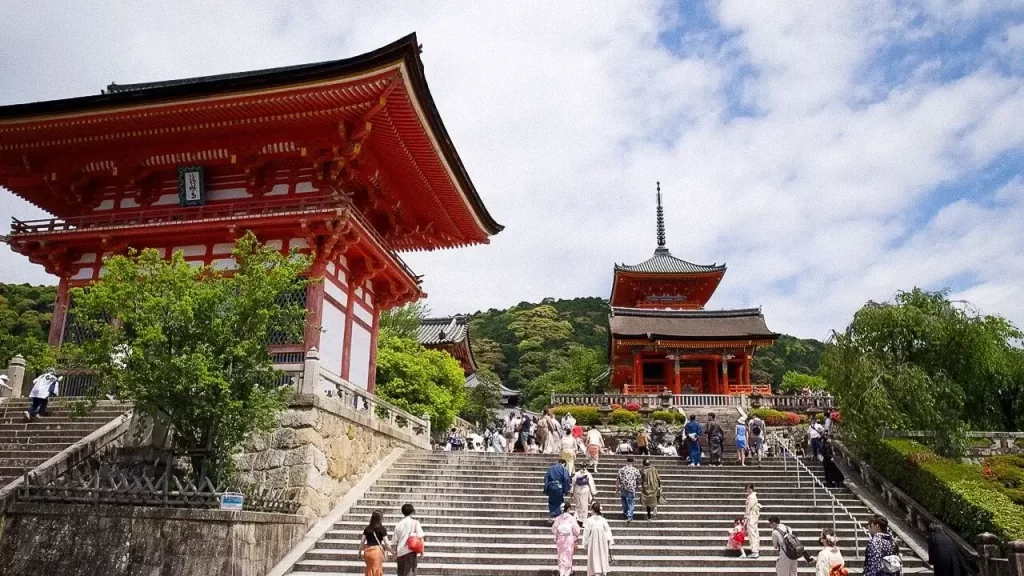 Kyoto é o lar de 17 Patrimônios Mundiais da UNESCO, mais de 1.600 templos budistas e 400 santuários xintoístas, além de inúmeros jardins paisagísticos, castelos e casas de chá tradicionais. Entre os templos mais icônicos estão o Kinkaku-ji (Pavilhão Dourado), com sua estrutura revestida em folhas de ouro, e o Kiyomizu-dera, construído sobre uma encosta com vista panorâmica para a cidade.