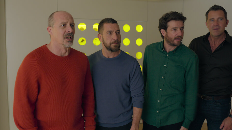 Pedro (Fernando Gil), Santi (Gorka Otxoa), Raúl (Raúl Tejon) e Luis (Fele Martinez) seguem como vetores de uma investigação sobre o que significa “ser homem” em um contexto de códigos instáveis. A série parte de uma premissa simples, mas produtiva: a de que há um descompasso entre a velocidade das transformações sociais e a capacidade individual de assimilá-las. É nesse hiato que se instala o humor e, sobretudo, o desconforto.