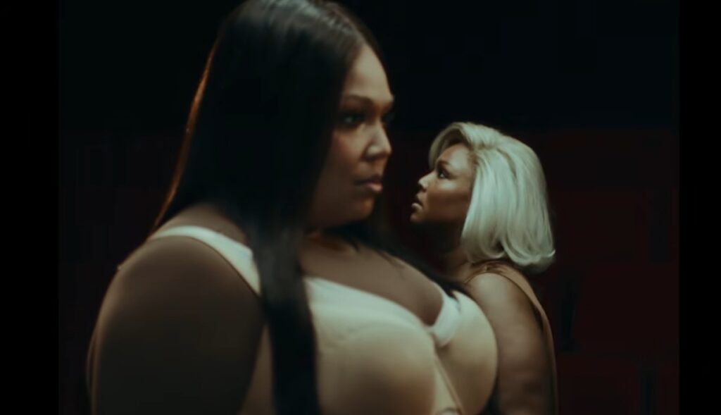 Visualmente, o videoclipe amplifica essa tensão. Dirigido por Tanner K. Williams e filmado por Bentley Rawle, o vídeo apresenta “Lizzy”, uma versão da artista inspirada na era de “Cuz I Love You”. O encontro entre as duas se torna o principal dispositivo narrativo — um diálogo surreal entre fases identitárias que oscila entre confronto e reconciliação. O efeito é ao mesmo tempo teatral e íntimo, posicionando o vídeo tanto como peça promocional quanto como um exercício de autorretrato.