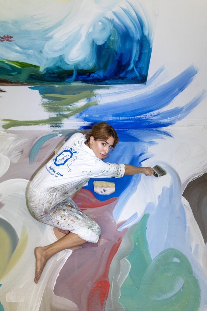 A artista visual brasileira Pàulla Scàvazzini vive um momento decisivo em sua trajetória. Em 2026, ela apresenta duas novas exposições que consolidam uma pesquisa visual singular: a participação no duo show “Between Utopias and Abyss”, com curadoria de Maryana Kaliner, na Kaliner Gallery, em Nova York, e a individual “Língua de Fogo”, com curadoria de Shannon Botelho, no Centro Cultural Correios, no Rio de Janeiro. As mostras, embora distintas em contexto e escala, compartilham eixos centrais de uma investigação que desloca a pintura do plano bidimensional para experiências imersivas, em que a tinta avança sobre paredes e pisos, transformando o espaço arquitetônico em campo de ação corporal.