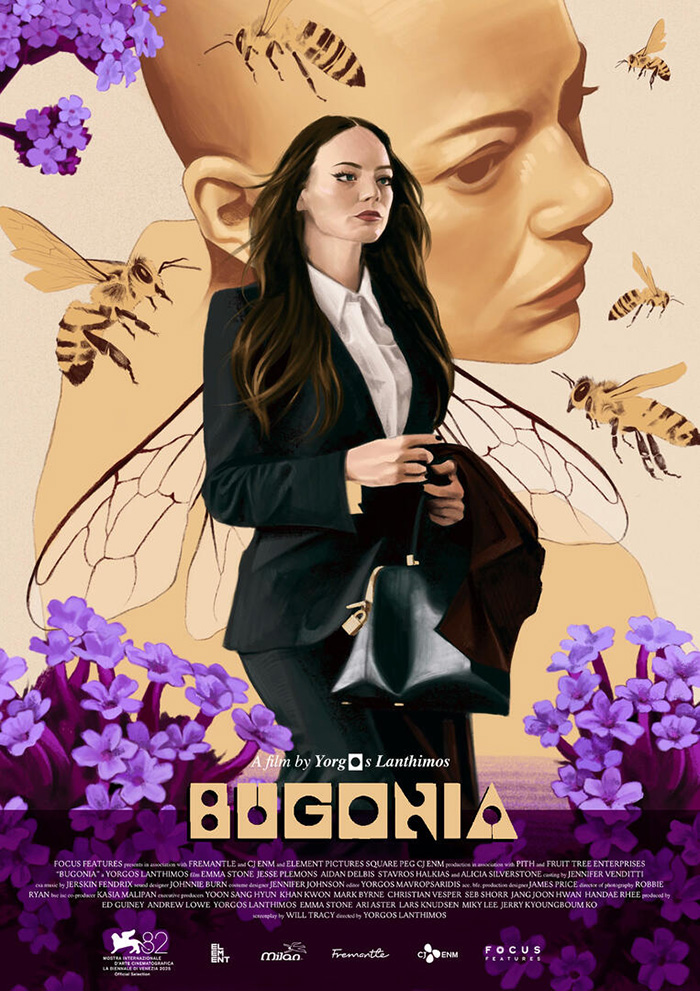 À primeira vista, “Bugonia” pode parecer um dos filmes mais enganosamente modestos de Yorgos Lanthimos. Não há espartilhos nem intrigas palacianas como em “A Favorita”, nem a exuberância steampunk barroca de “Pobres Criaturas”, tampouco uma premissa distópica de alto conceito explicitada em alegoria clara. Em vez disso, “Bugonia” se desenvolve como uma tragicomédia claustrofóbica, conduzida por diálogos, sobre uma CEO, dois conspiracionistas e uma realidade que vai se desfazendo lentamente. Sob essa contenção aparente, porém, está talvez o filme mais filosoficamente ambicioso de Lanthimos. Certamente, o mais afinado com as ansiedades do presente.