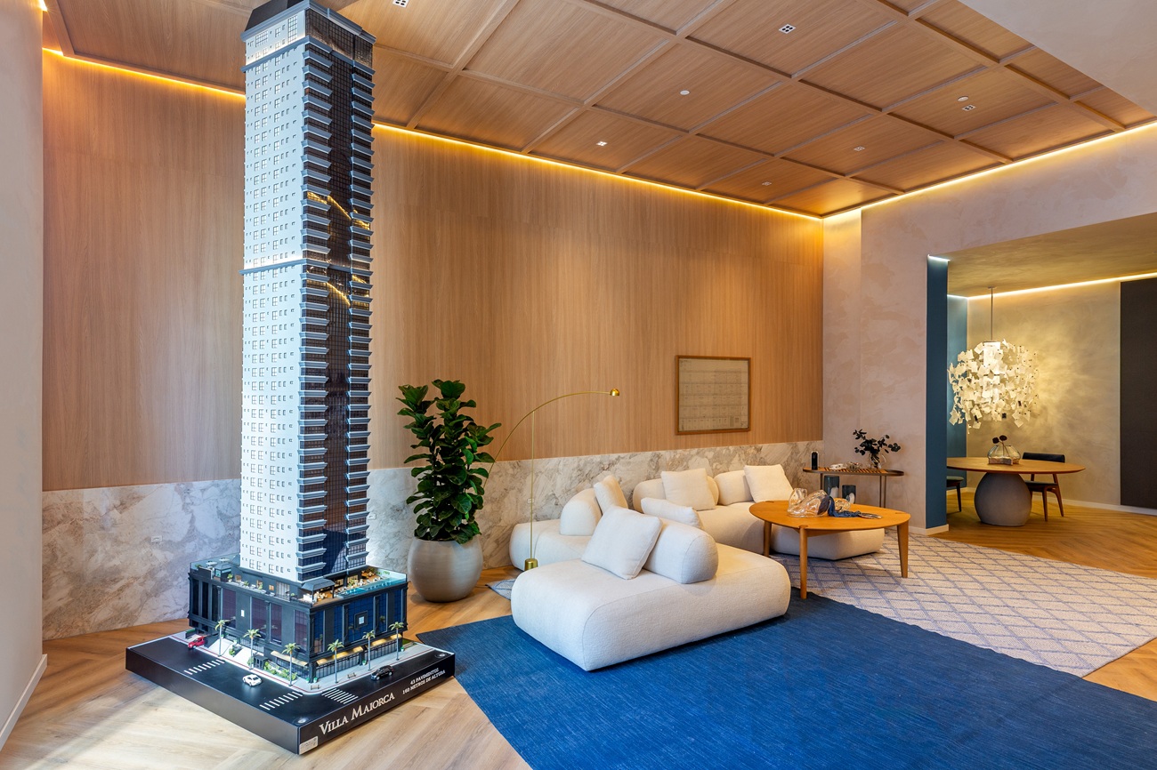 O espaço, criado para receber clientes e visitantes, é também um tributo à história da Gandin Construtora, uma das pioneiras do mercado imobiliário de Itapema (SC) – cidade que figura entre as mais valorizadas do país. Uma linha do tempo interativa percorre a trajetória da empresa ao longo de mais de 40 anos e estabelece uma ponte entre passado e futuro por meio de objetos reais extraídos da obra do edifício Villa Maiorca, sede da mostra.